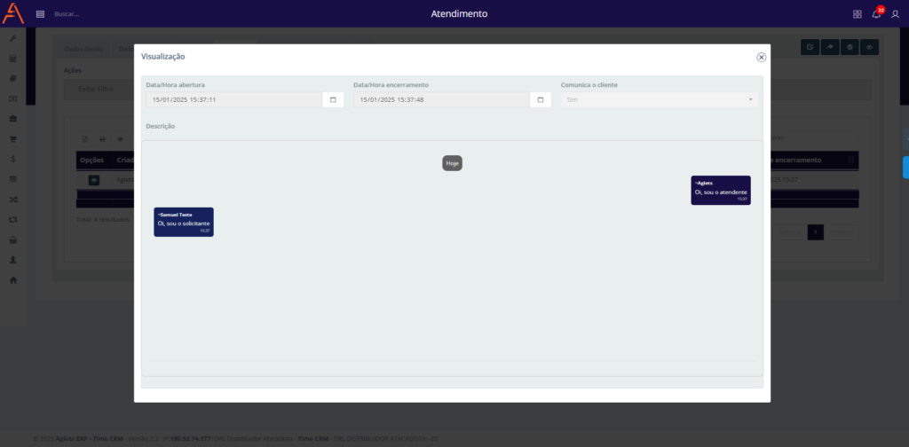 - Data fechamento: Apresenta a data em que o atendimento foi fechado (caso já tenha sido fechado);