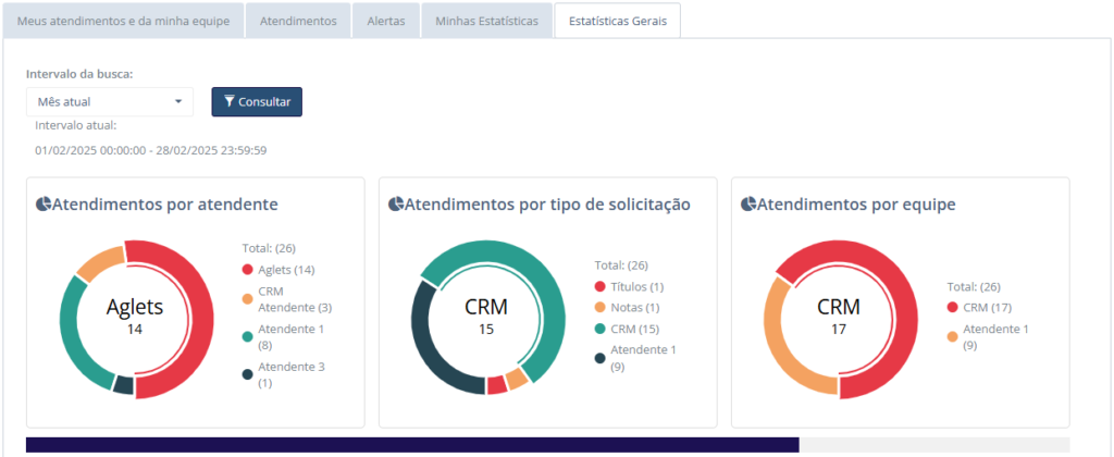 - Tipo de data: Filtra os atendimentos por intervalo de tempo, tendo quatro opções: