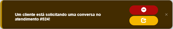 Através do Chatbot, o solicitante pode acessar a opção de “Falar com um atendente sobre este atendimento” ao tratar de um atendimento em aberto.O solicitante será movido para uma fila e informado sobre sua posição sempre que ela for alterada. Os atendentes atual e responsável terão prioridade para assumir o atendimento no qual o chat foi solicitado. Caso não estejam disponíveis, o atendimento será direcionado aos atendentes da equipe “Padrão WPP”, seguindo a ordem de prioridade de uma fila circular. Na sua vez de ser atendido, um atendente será selecionado e notificado (via Portal ERP, WhatsApp, e-mail e Teams) para que acesse o chat ao vivo do atendimento. A notificação de solicitação de Chat ao vivo para o atendente no Portal ERP é diferente das demais, sendo exibida apenas na aba em foco/na última aba em que o atendente interagiu. Ela também possui um visual de destaque, além de um alerta sonoro interrupto, para que o atendente fique ciente de foi selecionado para atender um solicitante. Entretanto, é possível silenciar a notificação, através do botão vermelho que acompanha a notificação. Por último, ao clicar no botão amarelo, o atendente será redirecionado para o atendimento.