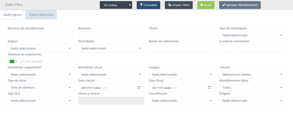- Número do atendimento: Filtra pelo número de um atendimento específico;