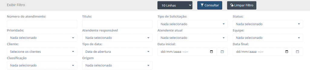 - Cliente: Este campo define os atendimentos relacionados ao cliente selecionado;