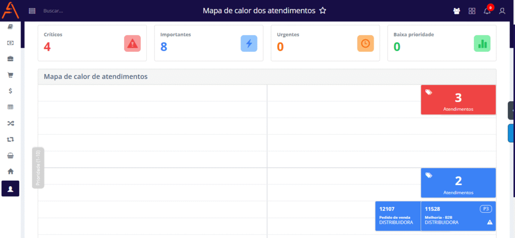 - Prioridade: Este campo define os atendimentos relacionados as prioridades;