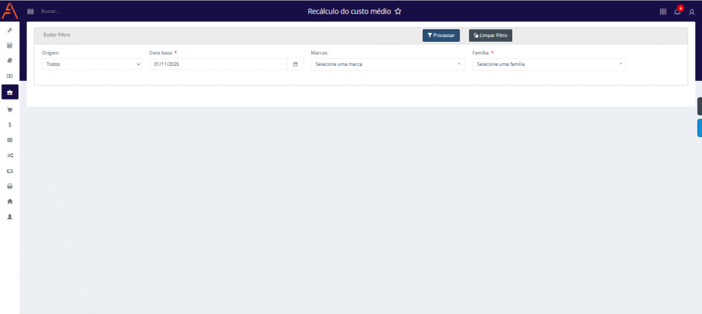 O cálculo do custo médio é realizado diariamente pelo sistema de forma automática. Contudo, em casos específicos, devido a divergências que podem ocorrer no processamento automático, o recálculo manual pode ser necessário para garantir a precisão das informações.