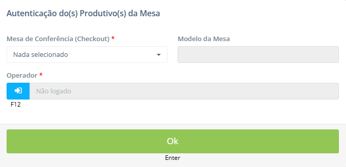Ao acessar a tela Checkout, o sistema solicita que o operador informe o login do operador.