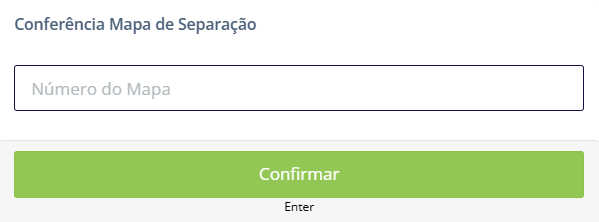 Depois de realizar o login e selecionar a mesa, é exibido um modal solicitando a digitação do Mapa de Separação que será utilizado na conferência.