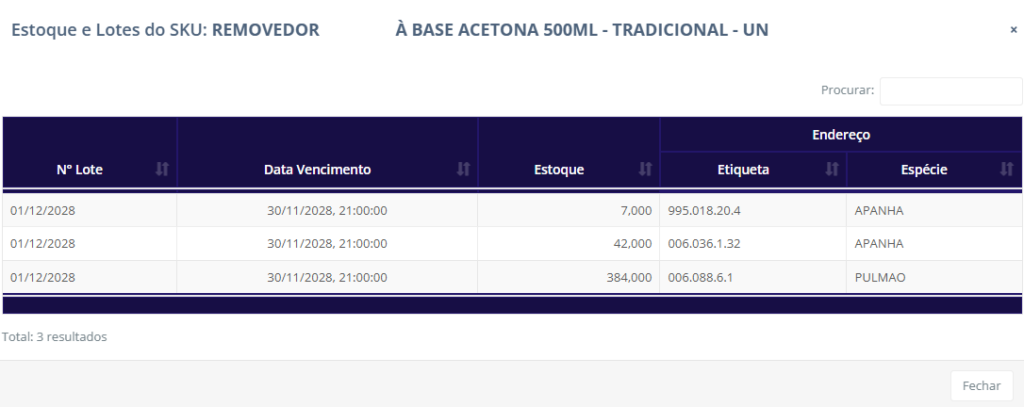 - Lote: Exibe o lote do produto.
