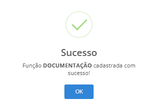 Após preencher os campos e salvar, será exibida a seguinte mensagem: