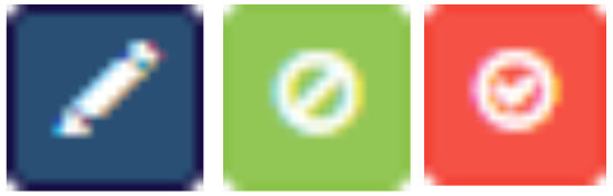 Ainda na tela Tipos Código de Barras, existe uma coluna que contém três ícones com com diferentes funcionalidades, para auxiliar no gerenciamento dos Tipos: