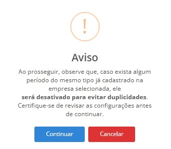 Importante: Ao salvar um período com o mesmo tipo e na mesma empresa, o sistema desativa o registro anterior, evitando possíveis duplicidades