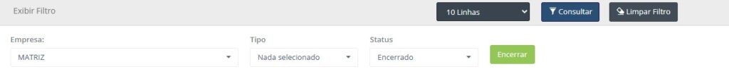 - Tipo: Selecione o tipo do encerramento desejado: Todos, Financeiro e Fiscal.