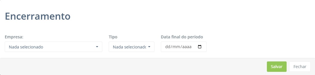 - Data final do Período: Selecione a data final do encerramento