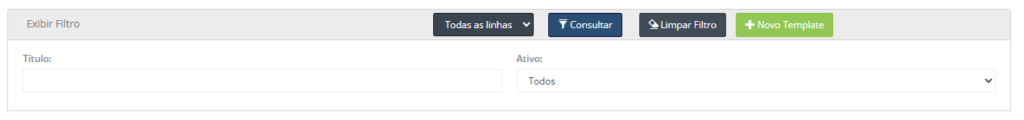 - Título: Digite termos para localizar registros pelo título do template, facilitando a busca.