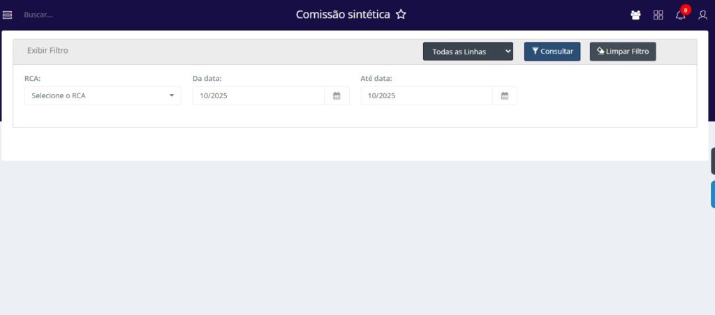 - RCA: Indica pelo qual deseja filtrar os dados de comissão.
