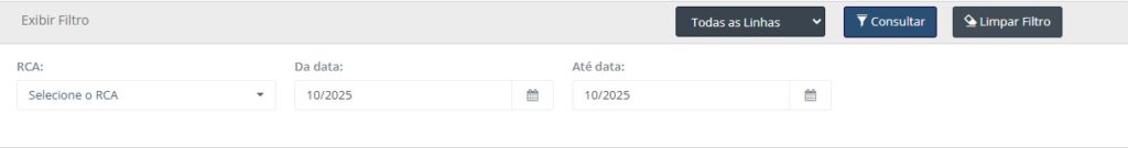 - RCA: Selecione um vendedor específico ou todos os vendedores para filtrar.