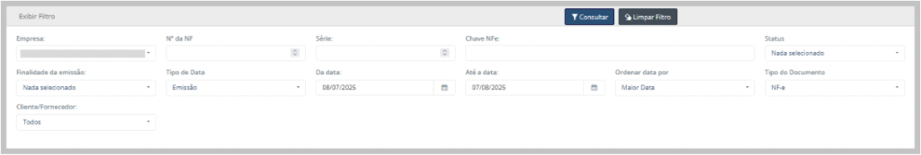- Empresa: Selecione a empresa associada ao documento fiscal pelo qual deseja filtrar.
