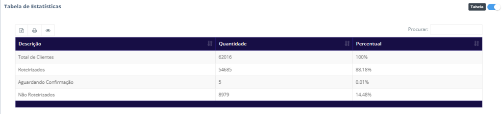 • Descrição: Categoria dos dados (Total de Clientes, Roteirizados, Aguardando Confirmação, Não Roteirizados).