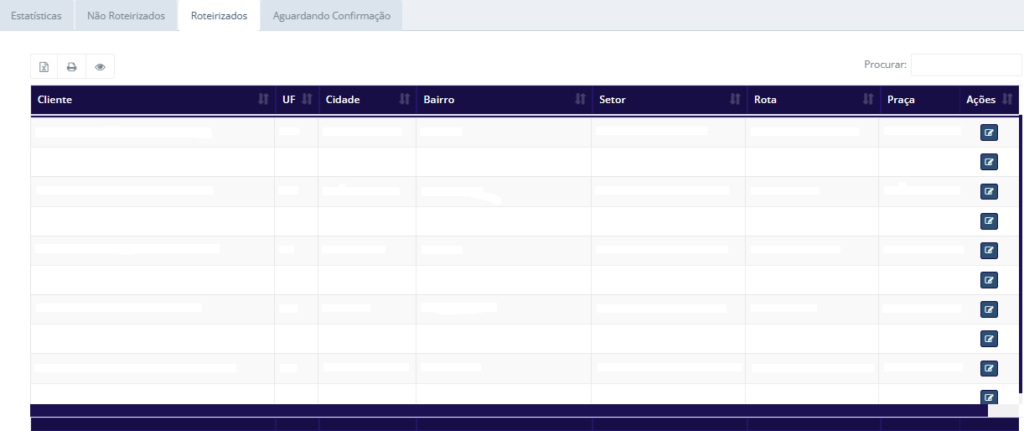 Visualização de Clientes Roteirizados: Apresenta a lista de todos os clientes roteirizados: