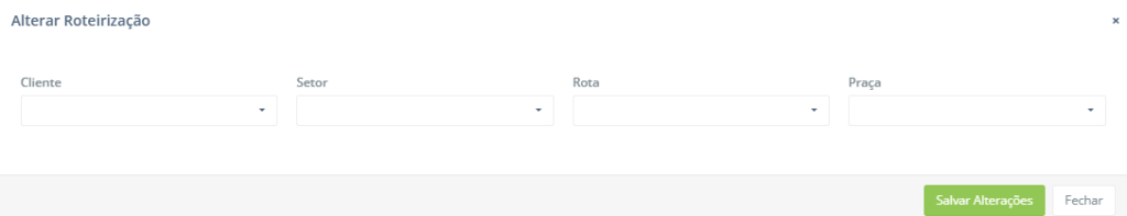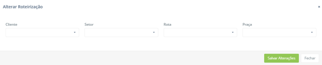 • Editar Roteirização: Este botão permite ao usuário alterar a roteirização do cliente. Para isso é exibido o seguinte modal: