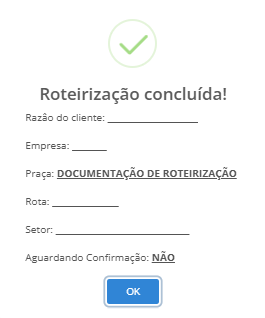 • Confirmar Roteirização: Este botão permite ao usuário confirmar a roteirização do cliente.