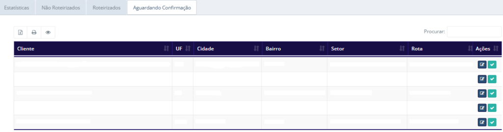 Visualização de Aguardando Confirmação: Apresenta a lista de todos os clientes que estão aguardando para confirmar a roteirização: