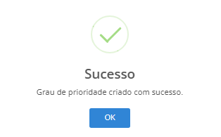 Através dessa tela o usuário pode criar, editar, inativar e ativar um grau de prioridade.