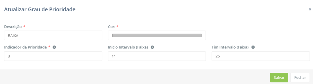 - Cor: Permite ao usuário editar a cor do grau de prioridade.