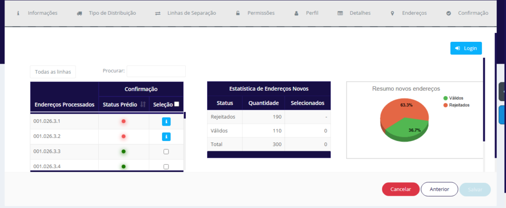 Esse funcionamento se aplica tanto à Criação de Novos Endereços quanto à Alteração em Massa.