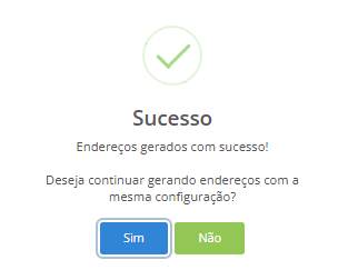 O sistema também permite que o usuário gere novos endereços utilizando a mesma configuração.